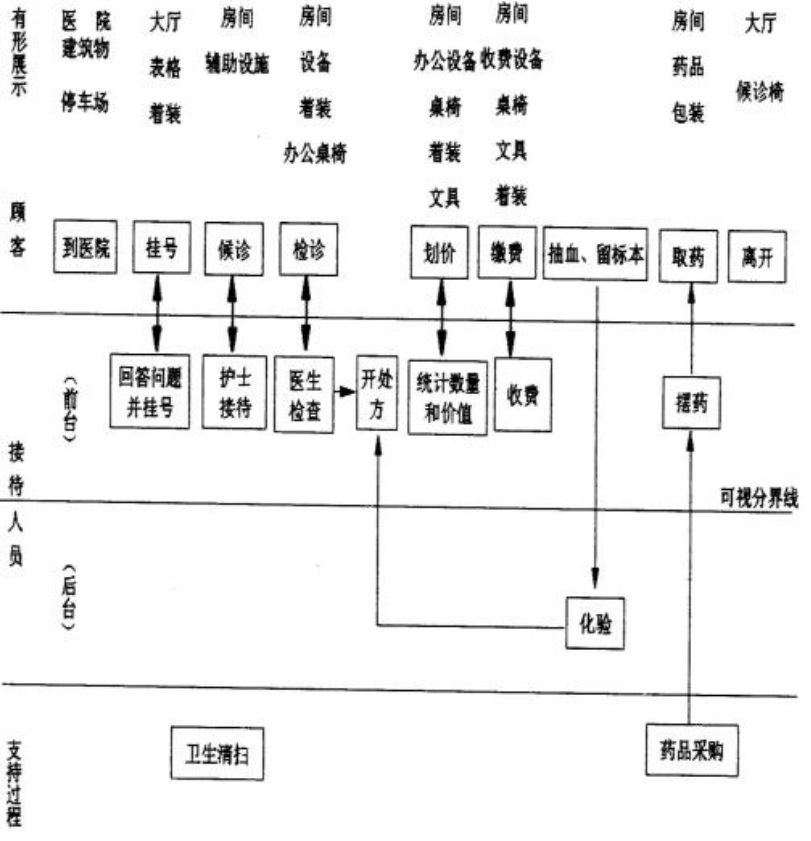 美国学者Vailarie A. Zeitheaml 和 Mary Jo Bitnet在《服务营销》一书中,向读者推荐了服务蓝图技术。这是站在顾客的角度,详细描绘服务系统的图片或地图,包括服务实施的过程、接待顾客的地点、服务中的可见因素等。这样,服务就被合理的分解成服务提供过程的步骤、任务及完成任务的方法,使服务提供者能客观的理解和处理服务。