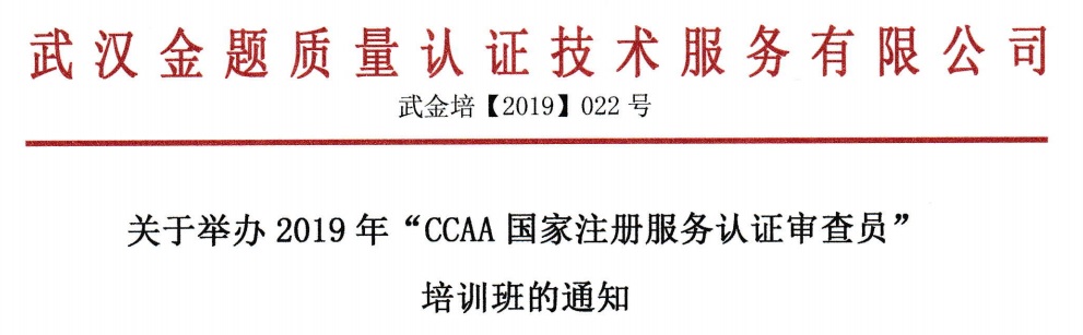 武汉金题质量认证技术服务有限公司已经确定于2019年7月8日-12日举办为期5天的国家注册服务认证审查员培训班,欢迎全国各地的朋友前来美丽江城,参加这次培训,早日成为服务认证审查员。